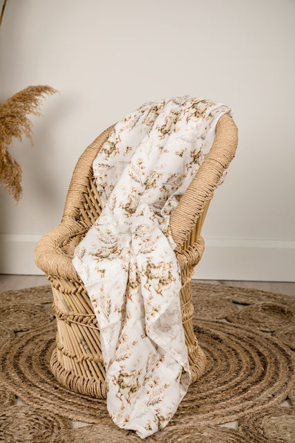La couverture d'emmaillotage Coucou Hibou est faite de viscose de bambou. En plus d'être divinement doux, le tissu respire et offre un confort maximum à votre mini. Le coton c'est bien, mais le bambou c'est mieux!